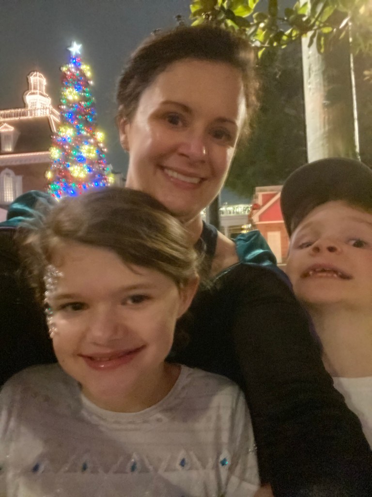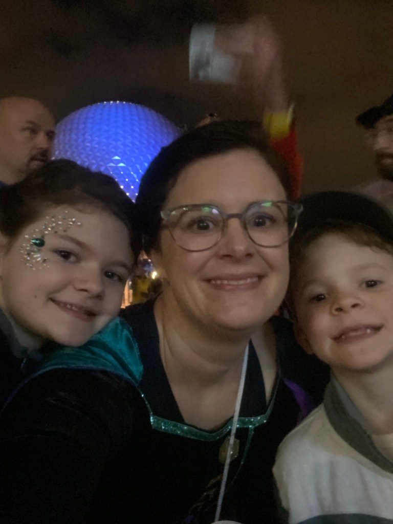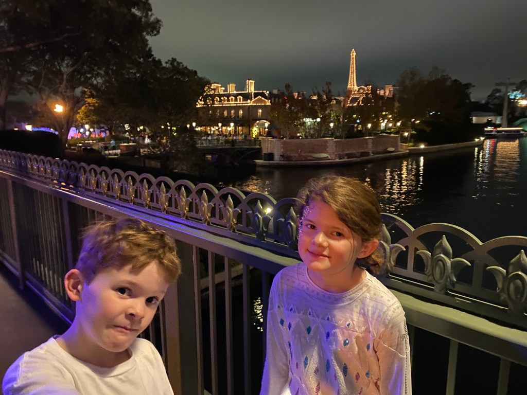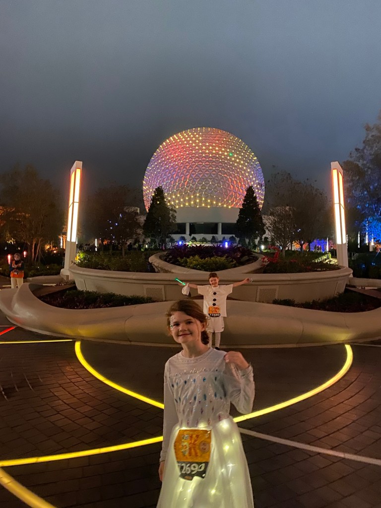 Side note: This park was the planned park for the day, but because of our lack of sleep and early wake-up, we decided to call the park day short in Epcot and just head to nap instead, the hard, but right call in the end. Check out “Surviving Disney” for more on how we made the trip work for our kids. So these are the only nighttime ball pictures these two have because of that change in plans.