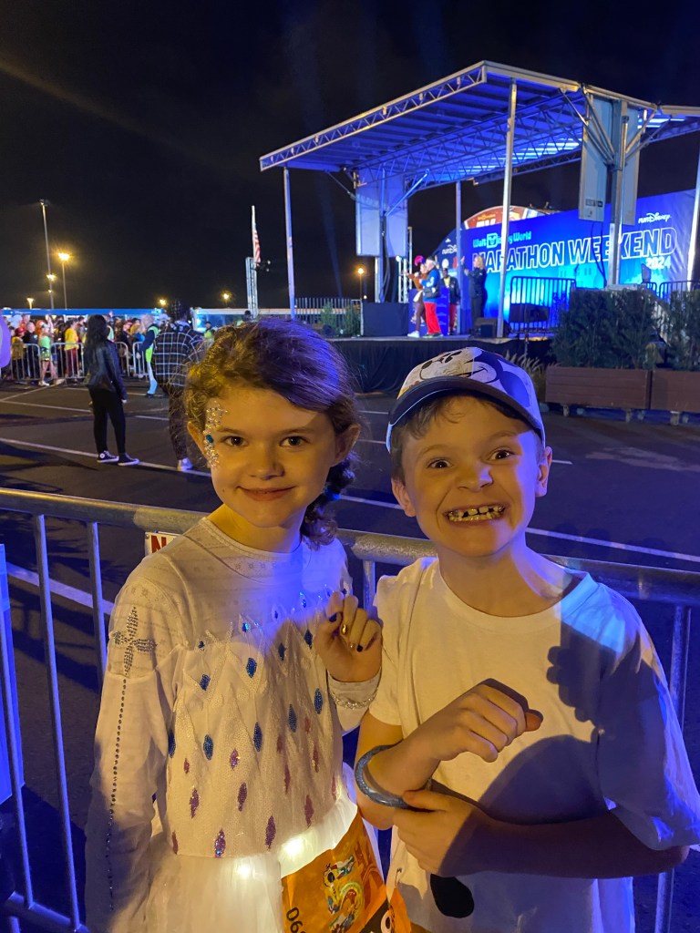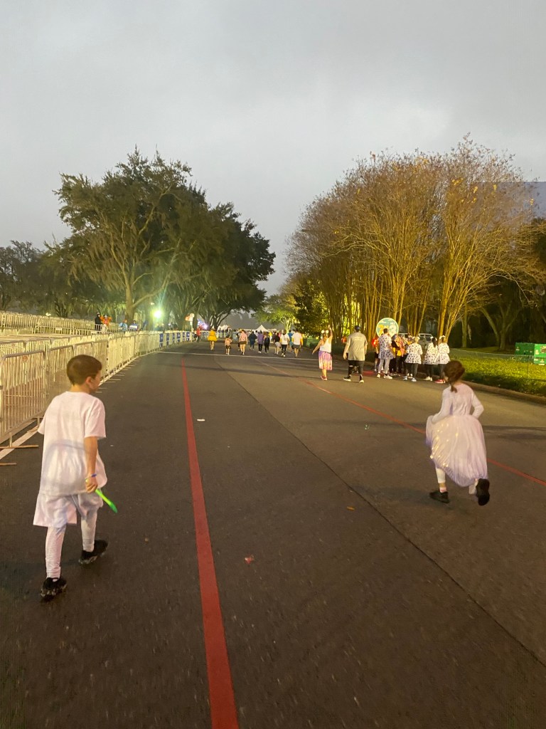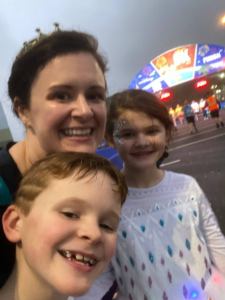 2 am came quick! The house next door decided to have a party and they ended around 1 am, this did not help us rest at all… Which leads me to this question: are you one of those sleepers that just wakes up with an alarm if you have an early day, or do you wake up every hour thinking you overslept? (PS: I am the later). My kids were the former thankfully, and they were so excited to experience their first Run Disney Event. The 5k had amazing characters, fun music along the course, the amazing pre-show, marching bands, chiors, and we met a few Rise’n’Run Podcasters, including Bob. My son kept saying, “Hi, Bob!” in such a funny way, and because we weaved amongst each other the entire course he got to say it multiple times! Bob even highlighted Sam aroun 34:23 on https://riseandrunpodcast.com/ep-121, pretty amazing stuff!